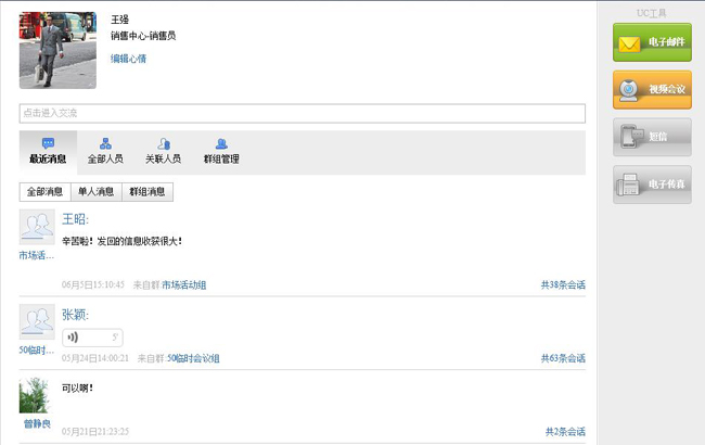 支持常用UC工具集成登录:IM,邮件,传真,视频会议,短信等。