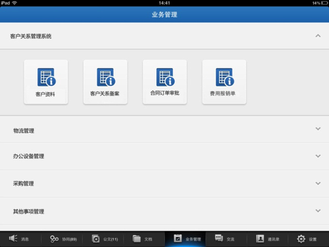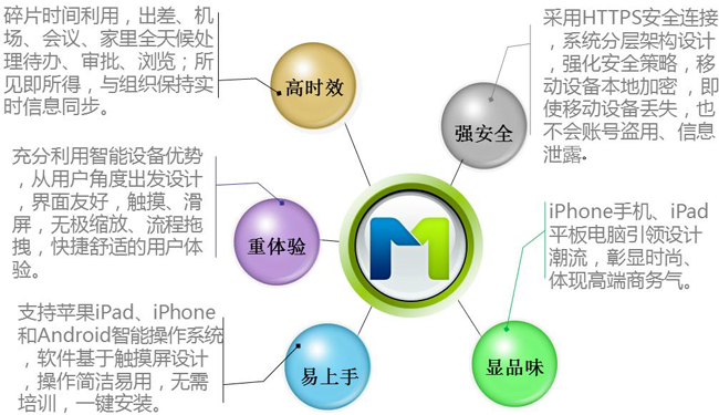 全面支持iPhone、Android手机客户端应用和iPad应用,做到“自由掌控,随时随地,简单舒适,时尚品味”支持表单审批、公文流转、协同审批等审批项;