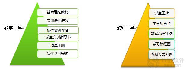 • 教辅:教学展开图、学生路径图、管理作业流程图、测评工具、企业动态案例库
