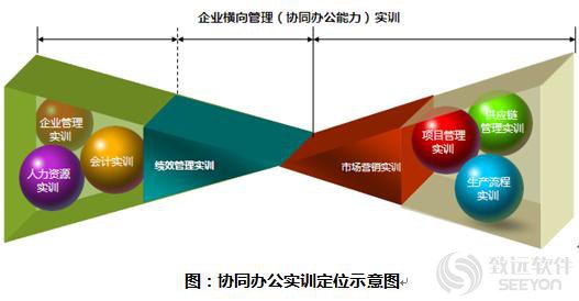 致远E9协同办公综合实训平台与各学校常见的会计实训产品、ERP实训产品的最大差异在于,协同办公综合实训平台训练学生的企业横向管理的能力认知。
