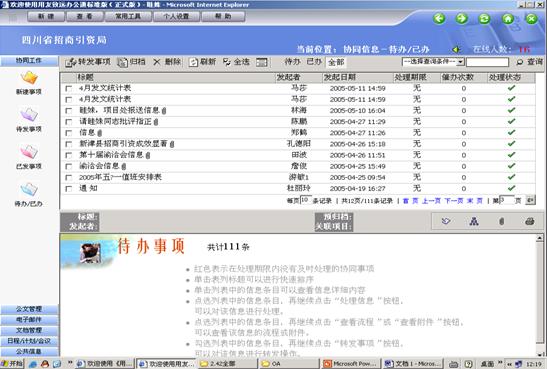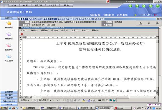 四川省招商局从最初使用的致远协创A6协同工作系统2.40版本,已经过了三次重大版本升级,功能更加丰富和应用更加完善。