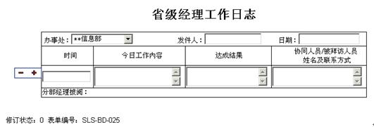 雅倩在全国有东、南、西、北四大分区,各个分区又有分部(在各个省的省会城市),分部底下总共有80多位省级经理,因此,省级经理每天的工作情况,成了领导最想关心又最头疼的事情,有了省级经理工作日志这个表单,领导可以实时的查看某个省级经理的工作情况及工作情况的完成效果
